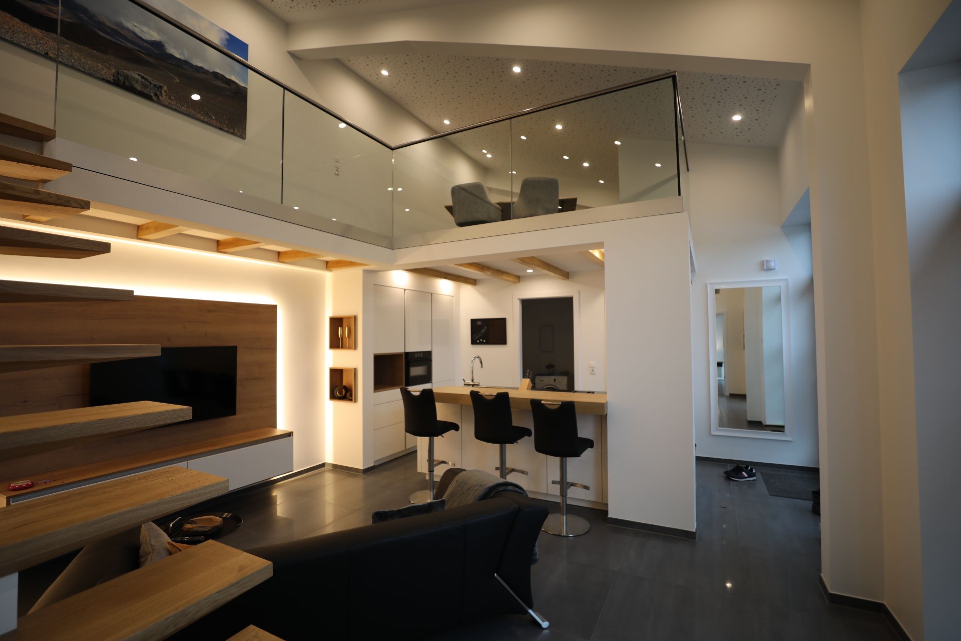 Unsere Loft-Ferienwohnung in Nortrup überzeugt durch stilvolles Design, helle Räume und eine moderne Küche. Im Garten mit Feuerstelle und Grill können Sie den Tag entspannt ausklingen lassen – ideal für Paare, Freunde oder kleine Familien.